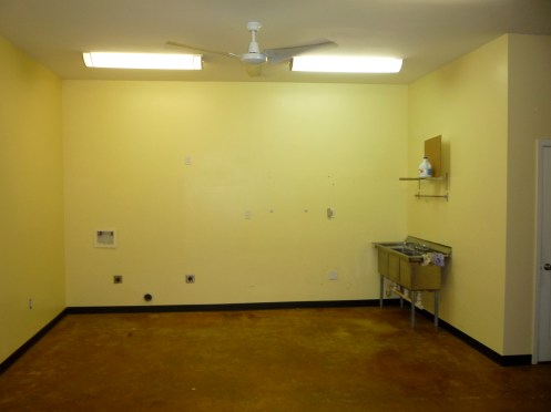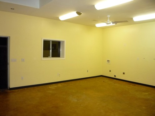 My main work bench will go under the window. It looks out onto the back yard, the best view I have ever had from the bench.